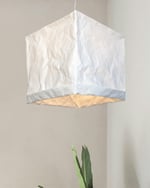 White square pendant lampshade crafted from washable, water-friendly paper.